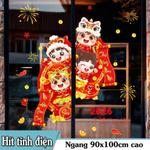 🧧 Decal Tết Bé Mừng Xuân 2026 – Bé Cá Chép Hóa Rồng & Bé Múa Lân | Decal Tết Hít Tĩnh Điện | Khổ 60×90 cm Trang Trí Cửa Kính