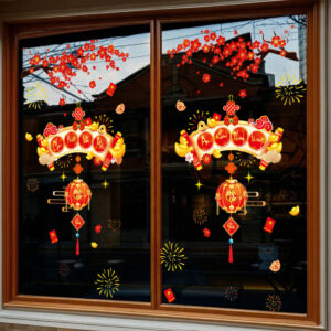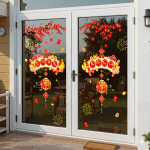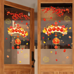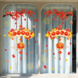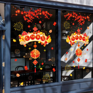 Với sắc đào đỏ thắm, vàng kim lung linh cùng bố cục trang trí hài hòa, mẫu decal này giúp mọi không gian – từ cửa hàng, quán café, showroom cho đến nhà ở – đều trở nên sang trọng, tươi vui và tràn đầy năng lượng của năm mới.