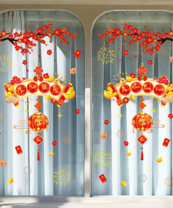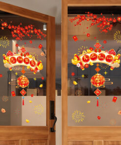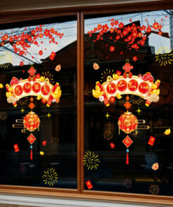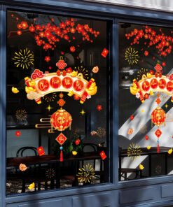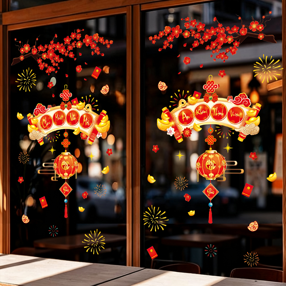 Với sắc đào đỏ thắm, vàng kim lung linh cùng bố cục trang trí hài hòa, mẫu decal này giúp mọi không gian – từ cửa hàng, quán café, showroom cho đến nhà ở – đều trở nên sang trọng, tươi vui và tràn đầy năng lượng của năm mới.
