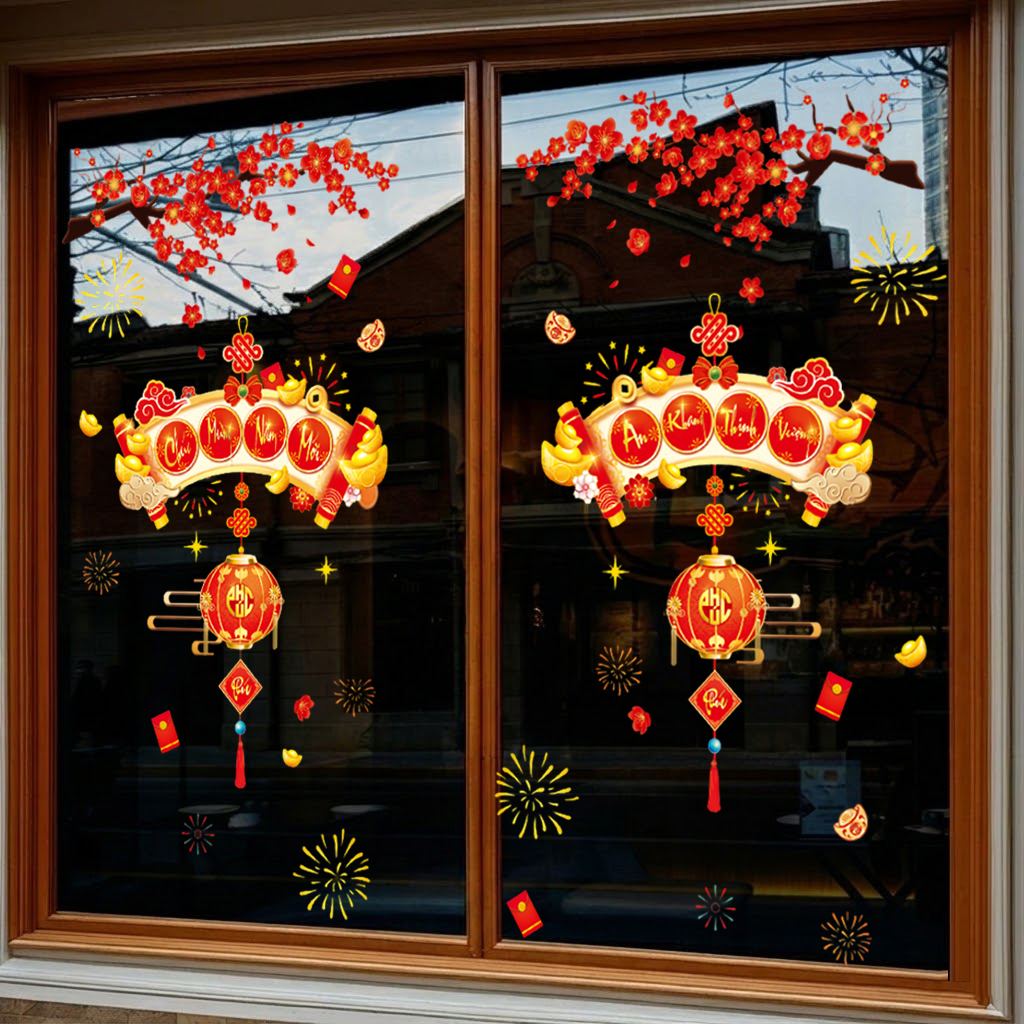 🎋 Decal Tết Cành Đào 2026 – Câu Chúc An Khang Thịnh Vượng – Lồng Đèn Đỏ | Hít Tĩnh Điện | Khổ 60×90 cm Trang Trí Cửa Kính