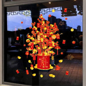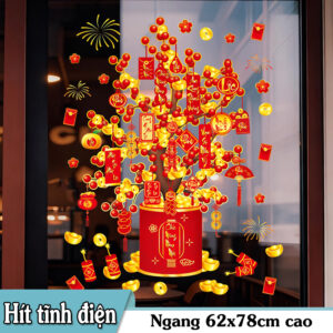 🎋 Decal Tết Cây Lộc 2026 – Bao Lì Xì & Thỏi Vàng May Mắn | Hít Tĩnh Điện | Khổ 60×90 cm Trang Trí Cửa Kính Tết