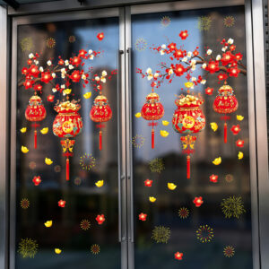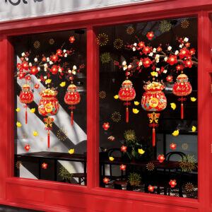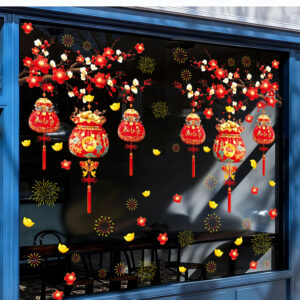 🏮 Decal Tết Lồng Đèn & Túi Phúc Lộc 2026 – Hoa Đào – Vàng Tài Lộc | Hít Tĩnh Điện | Khổ 60×90 cm Trang Trí Cửa Kính Tết