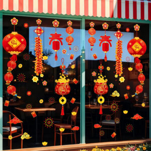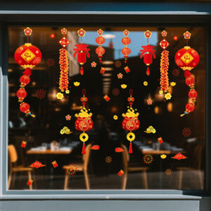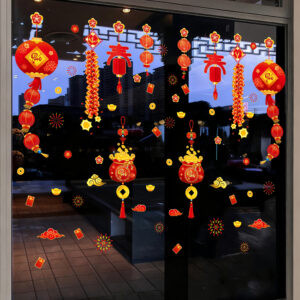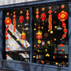 🎋 Decal Tết Lồng Đèn – Túi Tiền Tài Lộc – Pháo Đỏ | Hít Tĩnh Điện | Khổ 60×90 cm | Trang Trí Cửa Kính Tết 2026 Rực Rỡ & May Mắn