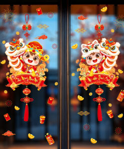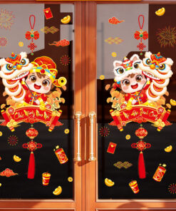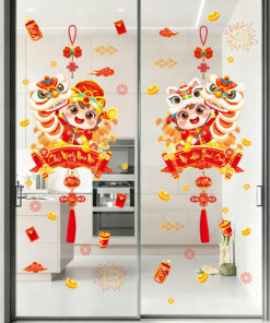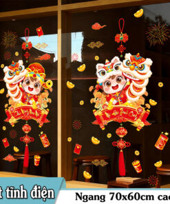 🏮 Decal Tết Múa Lân 2026 – Bé Múa Lân & Lân Sư Rồng Đỏ | Decal Tết Hít Tĩnh Điện | Khổ 60×90 cm Trang Trí Cửa Kính