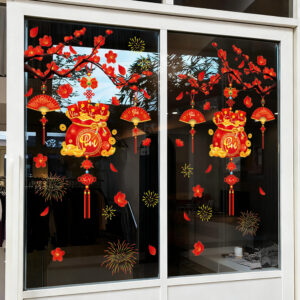 Decal Tết Túi Tiền Tài Lộc – Hoa Đào – Pháo Hoa | Hít Tĩnh Điện | Khổ 60×90 cm | Trang Trí Cửa Kính Tết 2026 Sang Trọng & May Mắn