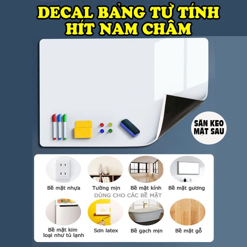 Decal Viết Bảng Trắng Từ Tính PET – Có Keo Sẵn, Hút Nam Châm Được, Viết Xóa Dễ Dàng