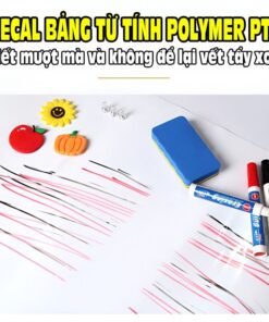 Điểm nổi bật của decal bảng PET là bề mặt trơn, nhẵn, viết trơn tay và dễ dàng xóa sạch – không để lại vết như bảng truyền thống sau một thời gian sử dụng. Đặc biệt, sản phẩm có từ tính mạnh, có thể hút nam châm rất tốt, cho phép người dùng ghim giấy note, ảnh, thông báo… lên mặt bảng cực kỳ tiện lợi.