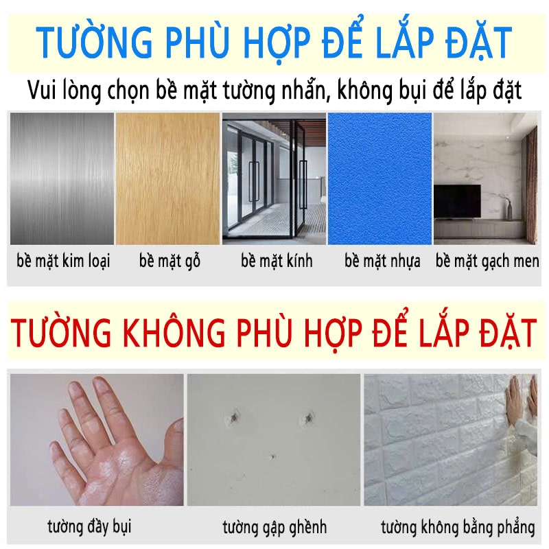 ✘ Không dán lên tường sần, ẩm mốc, bề mặt bám bụi hoặc sơn bong tróc