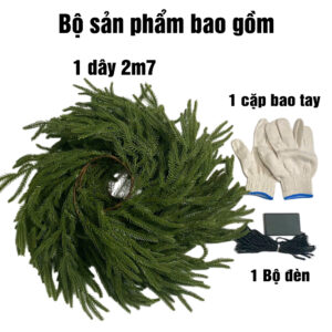 Dây Lá Thông Trang Trí Noel PE Dài 2m7 Có Đèn Led – Trang Trí Cửa, Cầu Thang, Lò Sưởi, Bàn Tiệc Sang Trọng