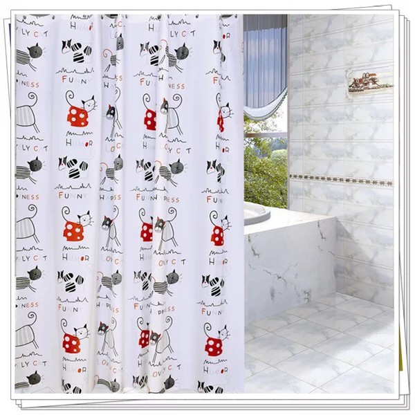 Nếu bạn đang tìm một chiếc rèm phòng tắm chống nước đẹp, dễ thương và bền đẹp, mẫu rèm PEVA họa tiết mèo là lựa chọn phù hợp.